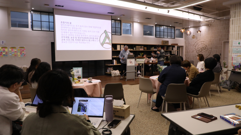 발제 후에는 질의응답 시간이 있었습니다. 아무래도 자주 만날 수 없는 민중교역 생산자님이 직접 오신 자리다보니, 필리핀 생산지에 대한 질문이 많았는데요. 먼저 ATPI 레이 테네프란시아 대표님에게 지속가능한 농업 안에서 이루어지는 작물다각화는 어떻게 이루어지고 있는지에 대한 질문이 있었습니다.