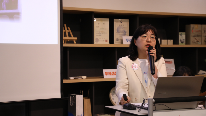 첫 번째 발제는 성공회대학교 전지윤 박사님의 <연구자가 바라본 두레생협 민중교역의 의미와 제언>이었습니다. 전지윤 박사님은 발제를 통해 두레생협의 민중교역을 통시적으로 분석하고, 두레생협이 민중교역의 실천을 통해 어떠한 협동조합기업시민의 모습을 보여주고 있는지 설명했습니다. 두레생협 외부에서 본 두레 민중교역은 이런 모습이었다는 점이 참신하게 다가왔습니다.