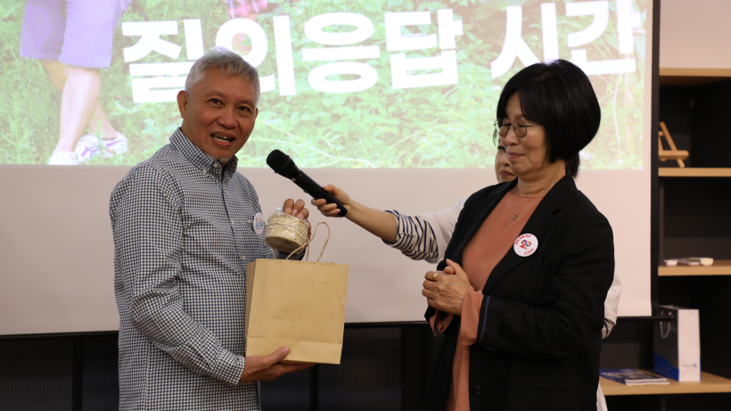 발제와 질의응답을 모두 마친 후에는 선물교환식이 있었습니다. 두레생협과 두레생협 생산자회에서 ATPI에 선물을 전달하고, ATPI에서도 준비한 선물을 두레생협에 전달하였습니다. 그리고 사진촬영을 마지막으로 행사를 끝마쳤습니다.