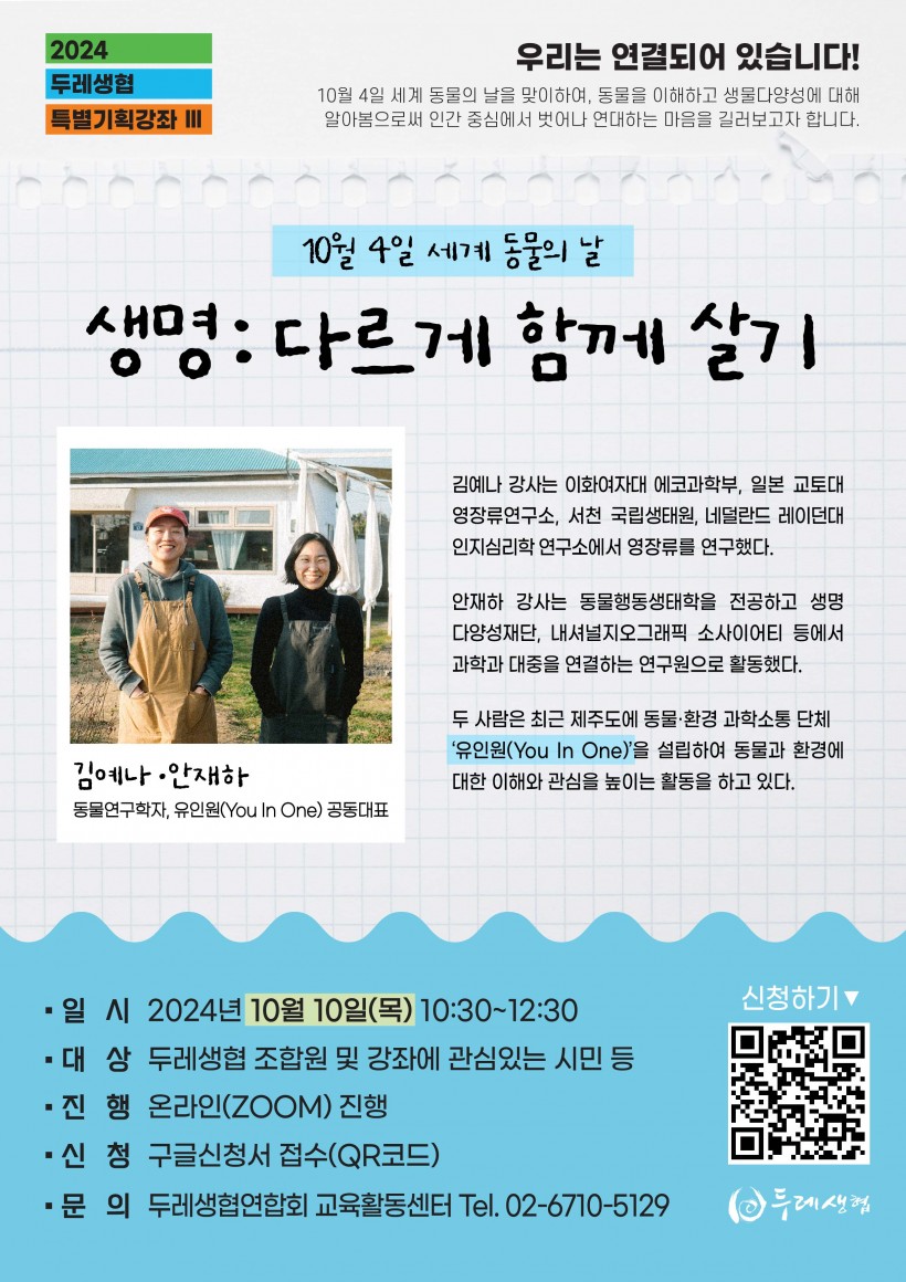 [모집] 두레생협 특별기획강좌Ⅲ 생명 : 다르게 함께 살기