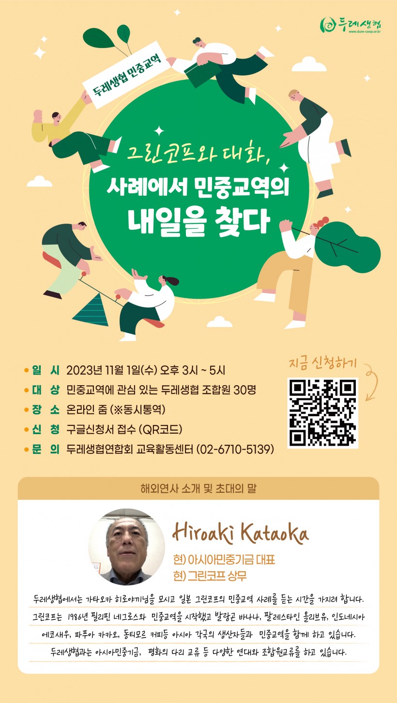 ● 해외연사 : 가타오카 히로야끼 (현 아시아민중기금 대표, 그린코프 상무)