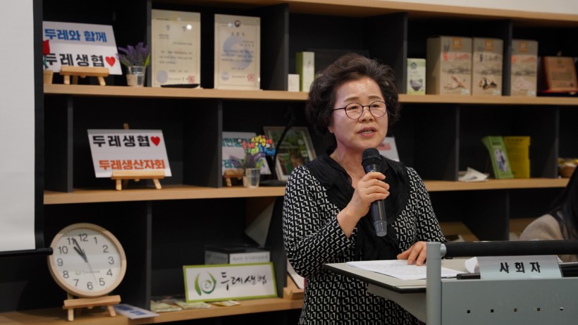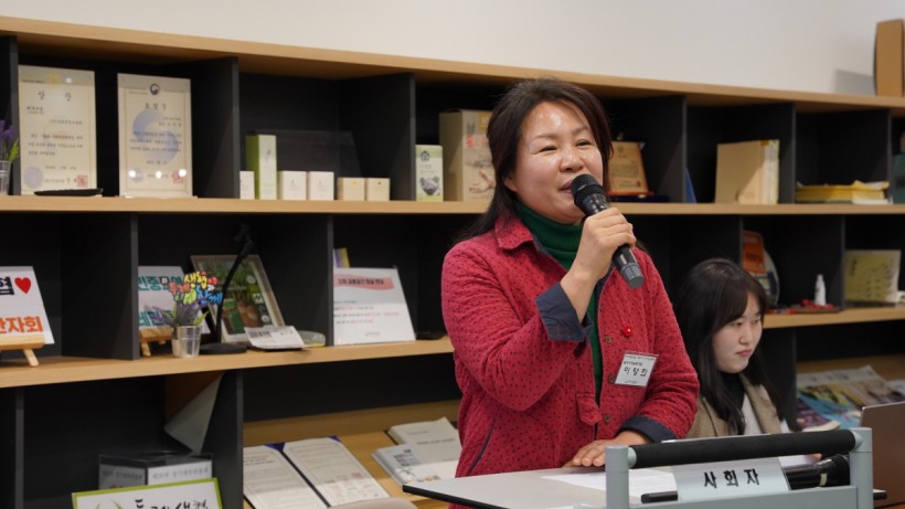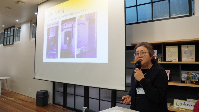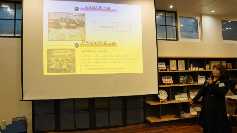 다음 순서로, 지난 연말에 바르크프로젝트 4기 협약식을 겸해 진행된 필리핀 임원 연수 결과를 고양파주두레생협 우미란 이사장님이 보고하고. 남영희 전 이사장이 전임 이사장 모임 활동에 대해 보고했습니다.