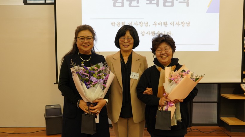 마지막 순서로 올해 퇴임을 하는 고양파주두레생협 우미란 이사장님과 안양YMCA등대생협 박윤희 이사장님을 위한 퇴임식을 가졌습니다.