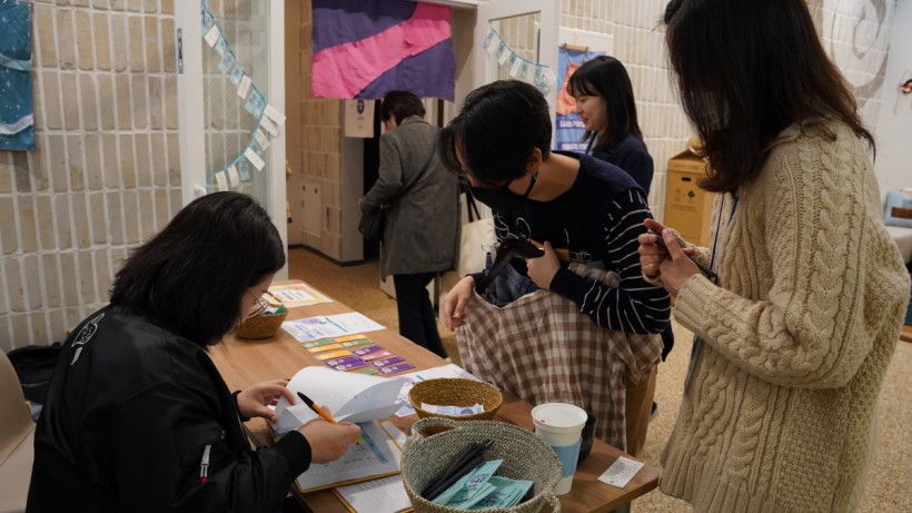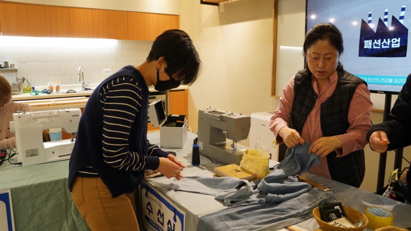 12시부터는 본격적으로 옷교환이 이뤄졌습니다. 참가를 위해 옷을 맡기면서, 옷에 담긴 이야기를 태그에 열심히 적어주셨는데요, 내가 더 이상 입지 않는 옷이 누군가의 선택을 받을 때의 뿌듯함과 나에게 맞는 옷을 만나는 기쁨을 동시에 누릴 수 있었다는 소감을 들려주셨습니다. 바지 기장을 줄이거나 수선이 필요한 옷은 바로 수선할 수 있도록 회원생협에서 오신 재봉능력자분들이 힘을 보태주셔서 행사가 더욱 원활하게 진행될 수 있었습니다.