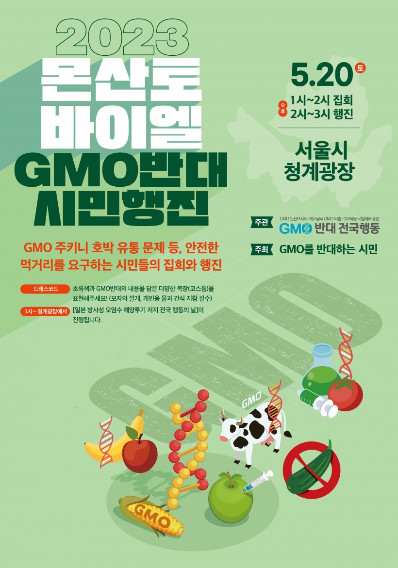 [공지]2023 몬산토바이엘GMO반대 시민행진 및 일본방사성오염수 해양투기 저지 전국 행동의 날 개최 페이지 정보 작성자 두레지기 작성일23-05-18 14:20 조회8,902회 댓글0건 목록 본문 목록