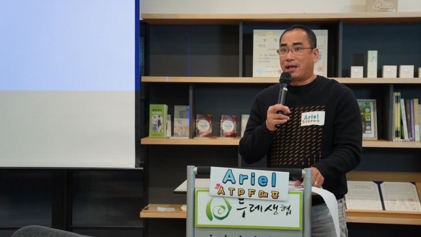 이어서는 필리핀 생산자들의 발제가 이어졌습니다. 두 번째 발제는 필리핀 ATPF 아리엘 기데스 대표님의 바르크프로젝드를 통한 생산지 성과와 이슈 & 오데트 태풍 피해 재건 보고였습니다. 우리가 모은 민중교역기금이 어떻게 쓰였는지, 또 지난 해 모았던 태풍 오데트 1004기금이 어떻게 쓰였는지 알 수 있는 시간이었습니다.