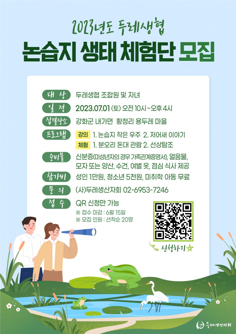 [모집] 2023년도 두레생협 논습지 생태 체험단 > 두레소식