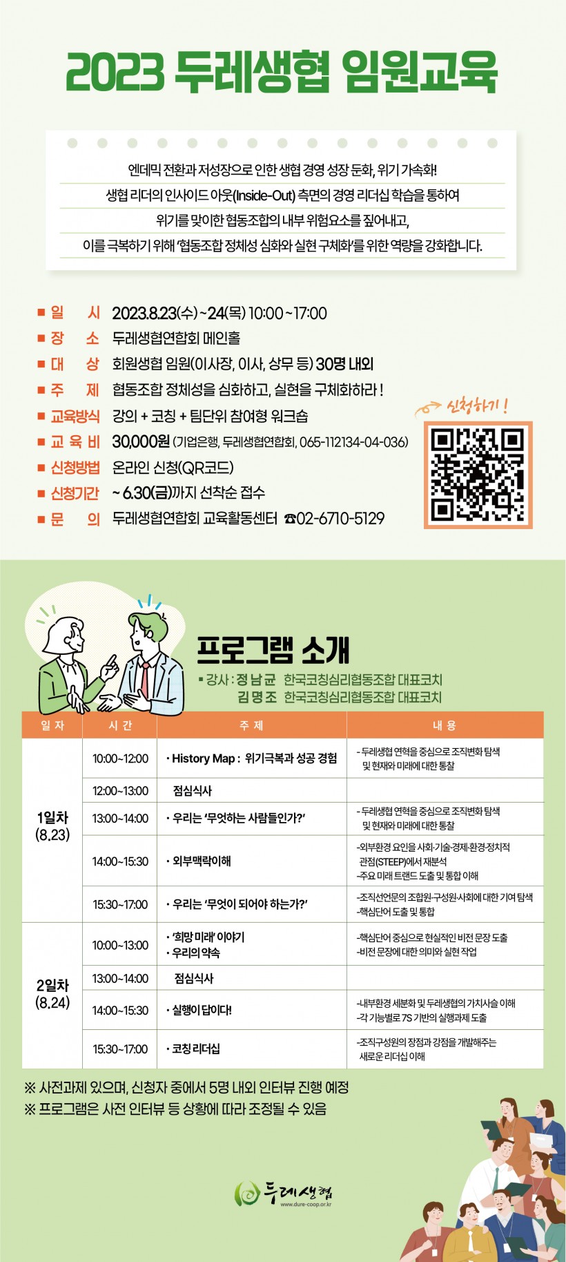 [공지] 2023 두레생협 임원교육 안내 및 참석자 모집(~6/30일까지) 페이지 정보 작성자 두레지기 작성일23-06-12 17:40 조회8,825회 댓글0건 목록 본문 신청하기▶ 신청하기▶ 목록