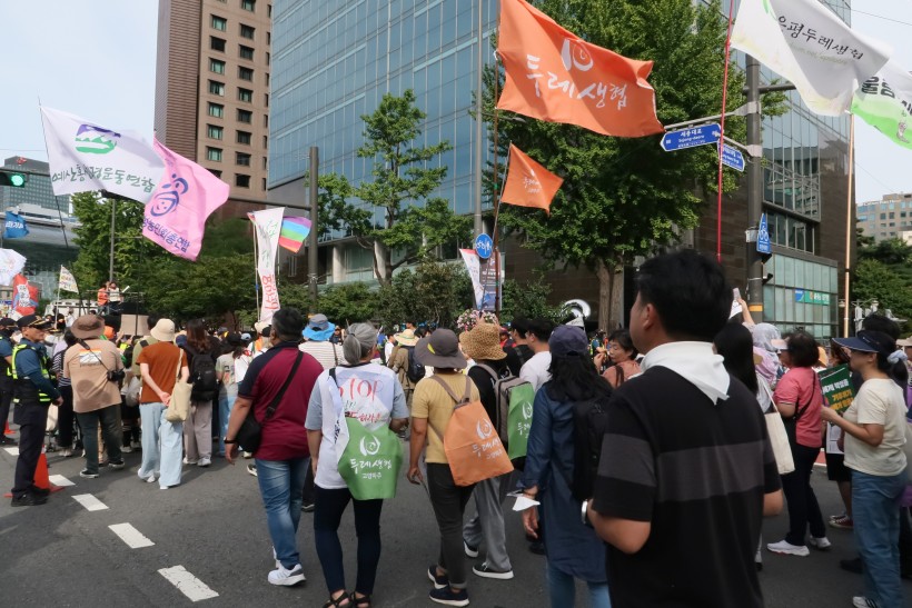 2시부터 시작된 본 집회와 행진에는 약 200 여명의 연합회, 회원생협 임직원과 조합원이 참여하여 함께 기후위기에 대한 적극적인 대응을 촉구했습니다. 용산 방면과 광화문 방면으로 나눠서 진행된 행진에서 두레생협은 광화문 방면으로 행진했습니다.