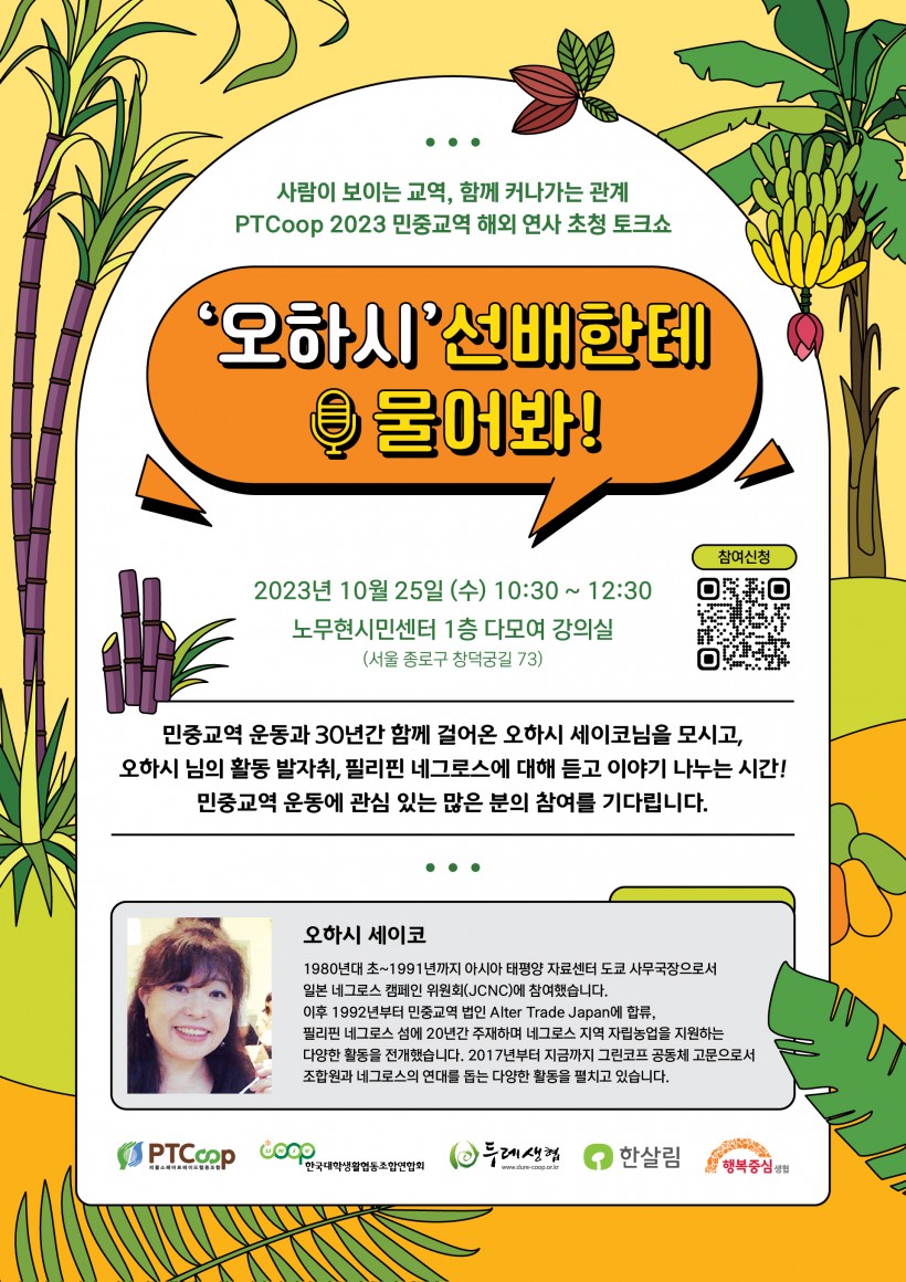 [모집] 2023 민중교역 해외 연사 초청 토크쇼 <오하시 선배한테 물어봐> 신청 안내