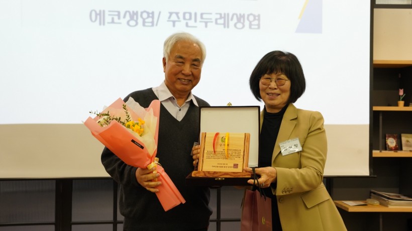 지난 한 해 동안 수고한 회원생협과 생산지의 노고를 기리기 위한 감사패 수여식에서는 에코생협과 주민두레생협, 그리고 올레팜과 채움건강생활에게 감사패를 전달하였습니다. 또한 10년 넘게 법률 자문을 해주고 계신 정남순 변호사께 공로패를 드렸습니다.