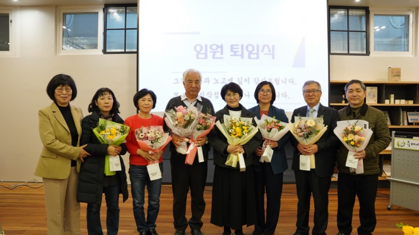 이번에 임기를 마친 총 7분의 이사장님의 퇴임을 기념하는 임원 퇴임식도 거행되었습니다. 이사장님들께서 두레생협과 함께 했던 시간이 참 뜻깊었다는 소감을 남겨주셨습니다. (평택두레생협 박은경 이사장, 푸른두레생협, 배병언 이사장, 에코생협 이시재 이사장, 시흥YMCA생협 이은경 이사장, 울림두레생협 장욱희 이사장, 아름다운두레생협 정기선 이사장, 주민두레생협 조수복 이사장)