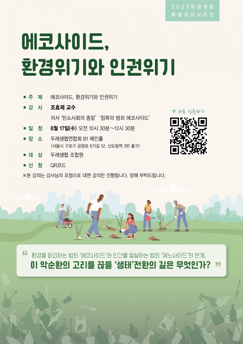 [안내] 2022년 두레생협 특별기획강좌 <에코사이드, 환경위기와 인권위기>