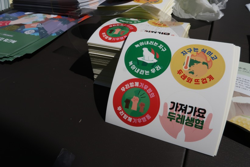 기후위기에 대해 경고하는 메시지를 재치 있게 담은 두레생협 스티커 또한 많은 사람들이 귀엽다하시며 가져갔습니다. 함께 배치한 안내책자인 그린액션 챌린지 워크북에도 많은 관심을 보였습니다.