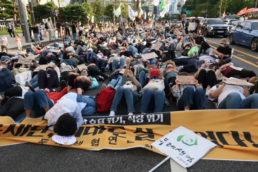 또한 행진 중 도로 위에 눕는 ‘다이-인(die-in)’ 퍼포먼스에도 적극 참여하여 기후위기가 초래하는 재난이 인류 생존을 위협함을 알렸습니다. 팔당생명살림생협 이양희 이사장님이 대표로 선두발언을 해 행진에 힘을 보태기도 하였습니다.