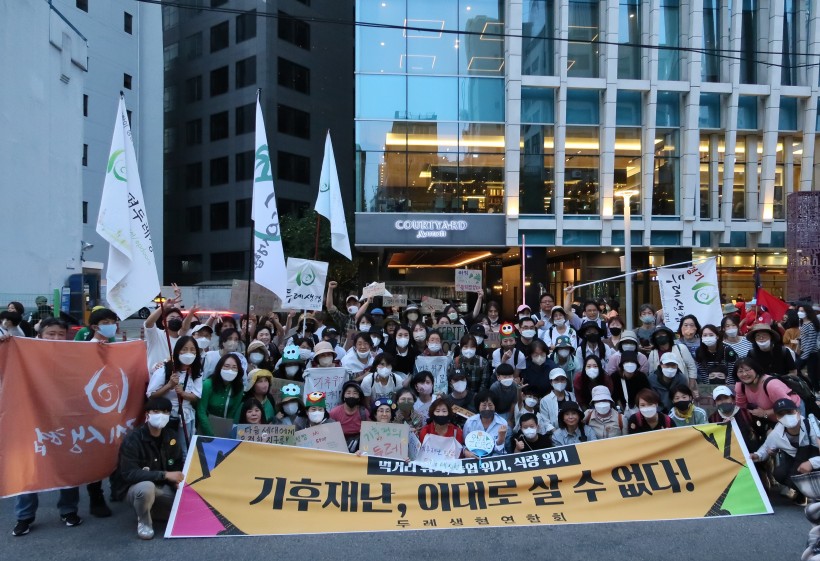 지난 9월 24일 서울시청과 숭례문 일대에서 진행된 <924 기후정의행진>에 두레생협이 동참했습니다. 이번 <924 기후정의행진>에서는 400여 개 시민단체와 약 3만 5천 여 명의 시민들이 모여 기후위기 극복을 위한 대책 마련과 인식 변화를 촉구했습니다. 두레생협에서도 연합회 직원들과 회원생협 임직원, 조합원 등 약 300여 명이 함께 했습니다.