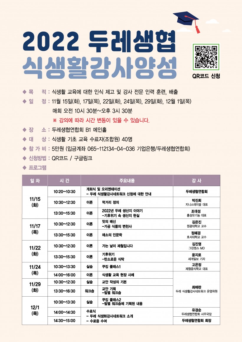 [모집] 2022 두레생협 식생활강사양성 과정 모집안내
