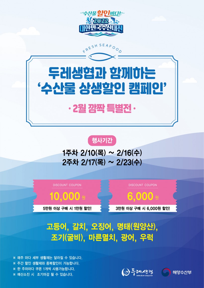 [안내] 두레생협과 함께하는 '수산물 상생할인 캠페인' - 2월 깜짝 특별전 > 두레소식