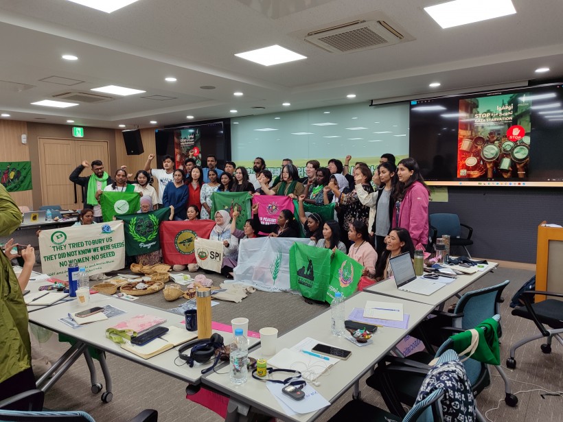 오후에는 비아 캄페시아 한국 컨퍼런스에 참여해 전 세계 농민운동과의 연대를 확인했습니다. 이 자리에서 푸아드는 참석자들과 함께 “Free Free Palestine”을 외치며 연대의 의지를 다지기도 하였습니다. 서로 선물도 주고받는 화기애애한 시간을 가졌습니다.