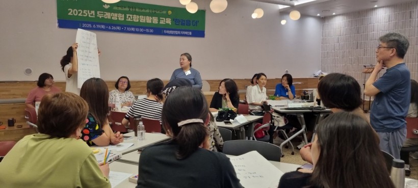 올해 두레생협은 2025년 두레생협 조합원활동교육 ‘한걸음 더’를 통해 조합원 활동의 가치를 다시 돌아보고, 조합원 모임이 보다 활기차고 지속 가능하게 운영될 수 있는 방향을 함께 찾아보는 시간을 가졌습니다.
