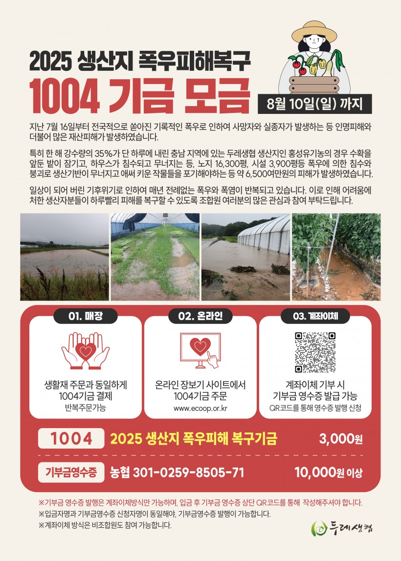 [공지] 2025 생산지 폭우피해복구 1004기금 모금 > 두레소식