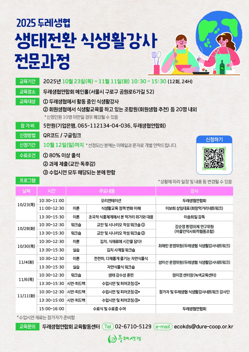 <2025 두레생협 생태전환 식생활강사 전문과정> 안내