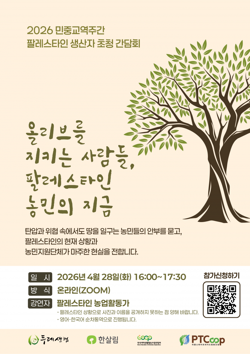 [모집] 팔레스타인 생산자 초청 간담회 신청 <올리브를 지키는 사람들, 팔레스타인 농민의 지금>
