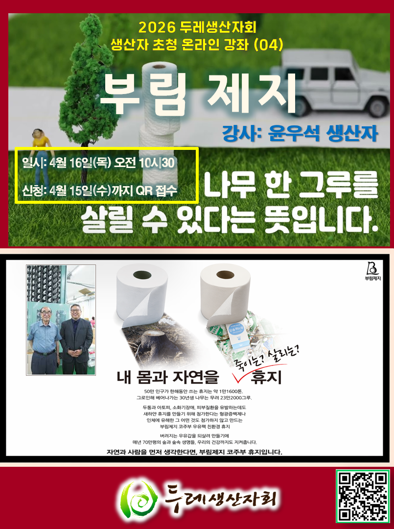 [모집] 두레생산자회 생산자 초청 온라인 월례강좌 <부림제지>