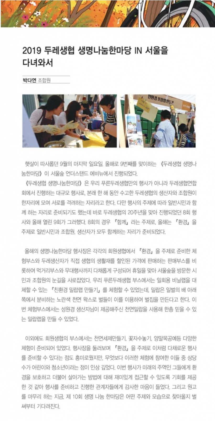 [푸른두레생협] 2019 두레생협 생명나눔한마당 IN 후기 > 회원생협 소식