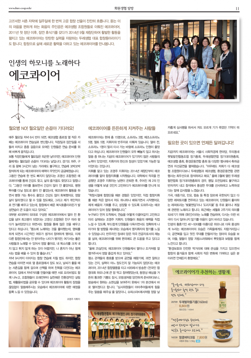 [에코생협] 인생의 하모니를 노래하다, 에코와이어 > 회원생협 소식