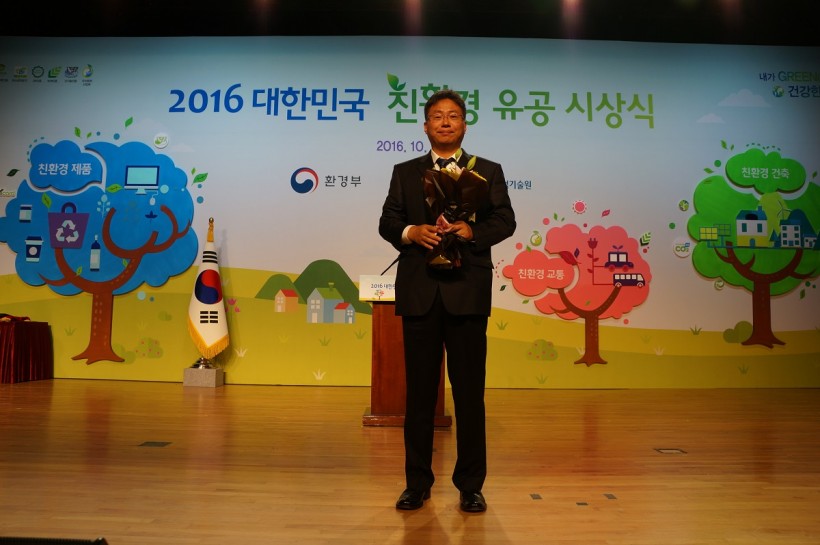 강남 코엑스에서 열린 [대한민국 2016년 친환경 유공 시상식]에서 경기두레생협이 [특별상]을 수상했습니다. 지난 10월 18일 경기두레생협 백형호 상무이사께서 반짝반짝 빛나는 특별상을 대표로 수상했습니다. 시상식장에서 직접 보니 대통령부터 국무총리, 환경부 장관이 주는 권위 있는 상이더군요. 특히 환경을 개선하는 기술을 가진 제조업체에서는 사업 운영에도 많은 도움이 되는 상이라네요.