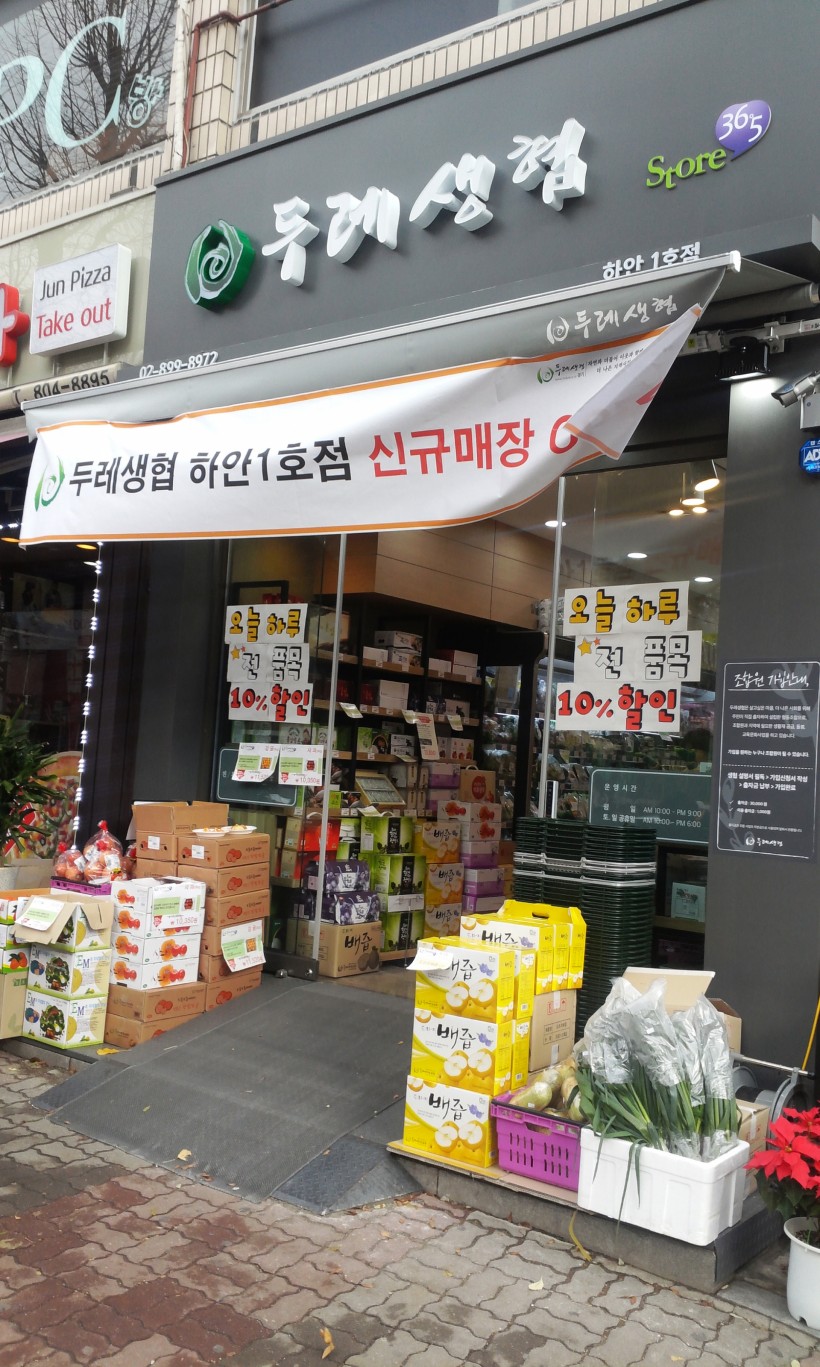 [경기두레생협] 하안1호점 신규개장 행사 현장 페이지 정보 작성자 두레지기 작성일15-11-27 11:58 조회19,671회 댓글0건 목록 본문 지난 11월 26일, 두레생협 111호점인 경기두레생협 하안1호점이 개장행사가 열렸습니다. 규모가 크지는 않지만 두레생협 생활재를 이용하시는데 불편함없이 이용하실 수 있도록 알차게 준비했습니다. 이번에 개장한 하안1호점은 사회적기업에서 만든 생활재를 소개하는 스토어365로 지정되어, 다양한 사회적기업의 생활재도 만나보실 수 있습니다. 흐린 날씨에도 불구하고, 하안1호점 개장을 축하해주시기 위해 찾아주신 조합원 여러분께 감사드립니다.앞으로도 더욱 가까이에서 두레생협 생활재를 이용하실 수 있도록 노력을 멈추지 않겠습니다. 목록