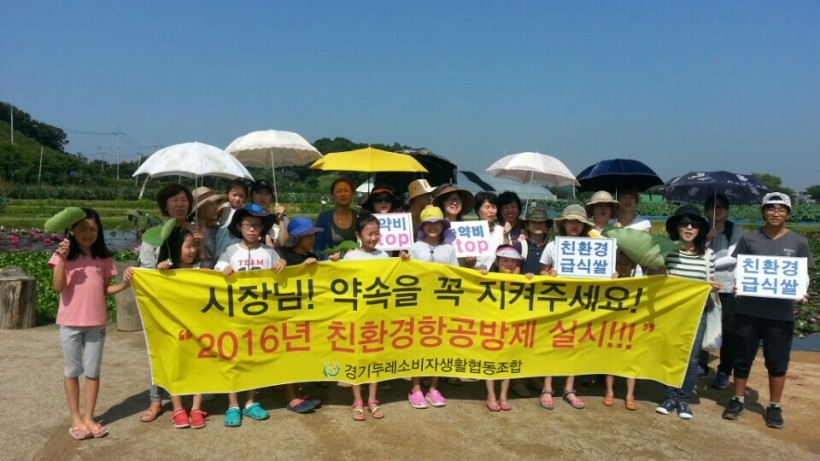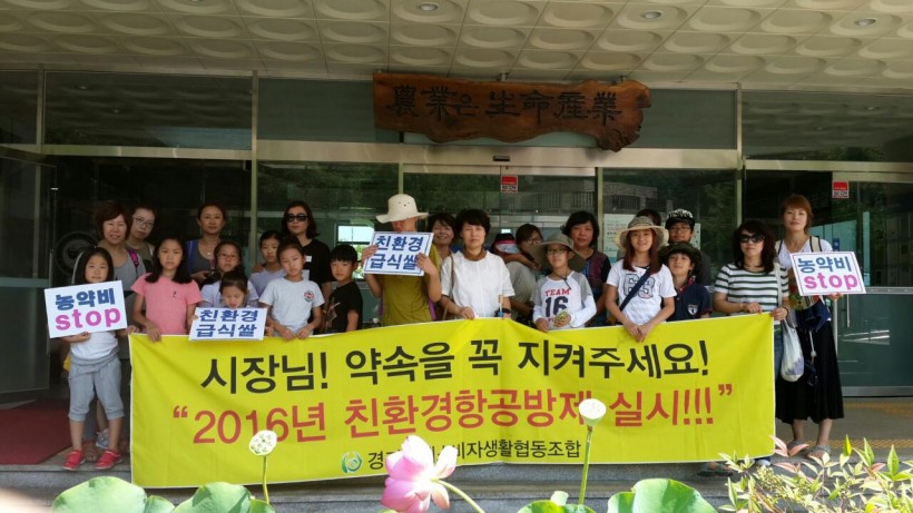친환경 안전먹거리 매장을 시흥시에 4곳이나 운영 하는 우리로선 친환경 재배가 얼마나 힘들다는 걸 잘 알고 있지만 “이 땅의 생명을 위해! 우리들의 자녀를 위해! 또 FTA 쌀 개방을 앞둔 시흥시 농민을 위해!” 친환경 재배만이 우리 모두가 살길이란 걸 잘 알기에 앞장서서 화학농약항공방제중단 운동을 했고 드디어 2016년 예산을 결정하는 시의회에 상정하여 2016년부터는 시흥시 전 지역에 친환경 약제항공방제를 실시한다는 결정을 받아냈습니다.