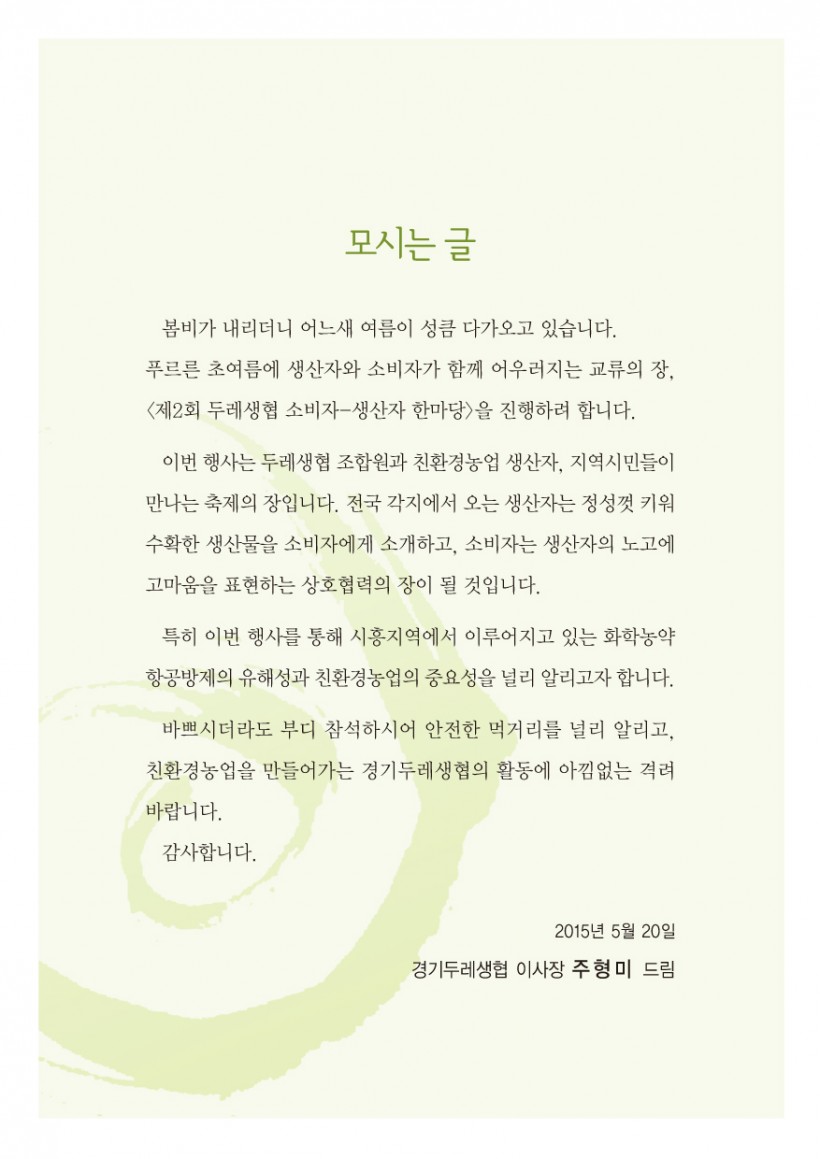 [경기두레생협] 제2회 경기두레생협 소비자 생산자 한마당 행사 취소 알림