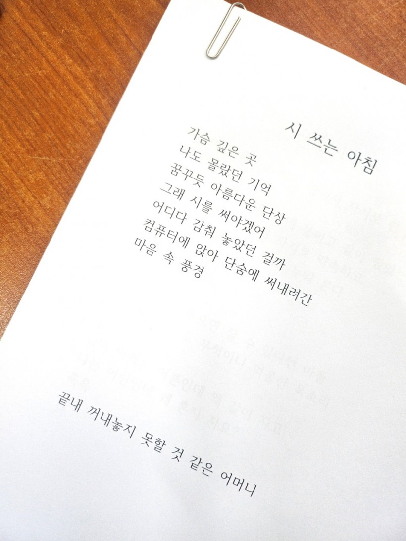 우리가 쓰는 글은 ‘시’나 ‘수필’이 되겠지요.