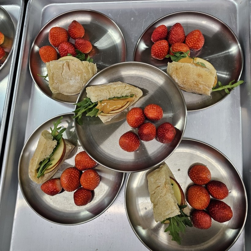 우리밀 치아바타에 의성 사과를 슬라이스해 올리고,