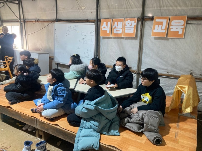 어린이들이 농부님과 두부 체험을 하고 있는 동안