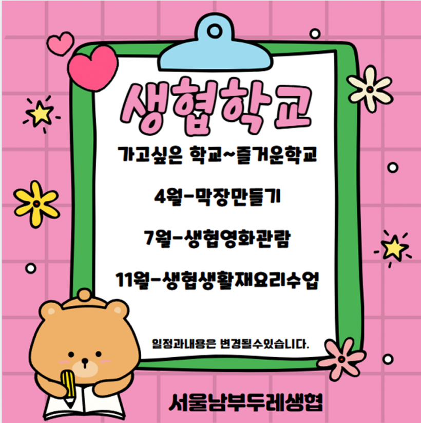 서로 소통하고 필요한 생활기술을 배우는 활동을 하고자 만든 생협학교!