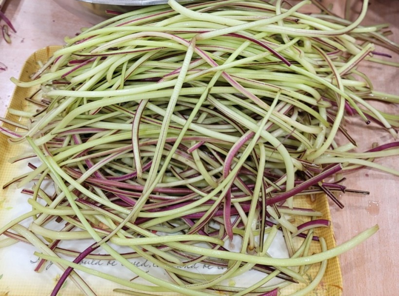 제철인 “통채루” 고구마줄기, 껍질을 까지 않고 먹어도 되지만