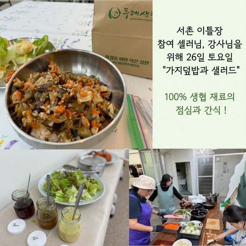 생협 식재료로 셀러분과 워크숍 강사를 위한 점심과 간식도 준비하였어요.