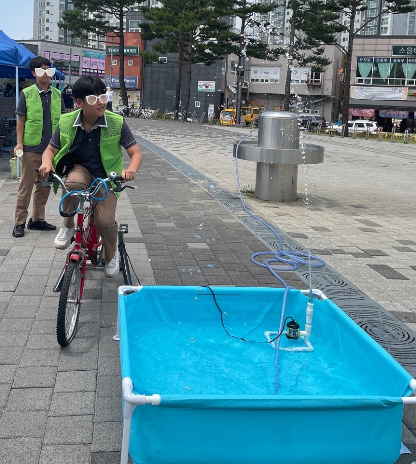 스스로 만든 전기로 분수를 돌려
