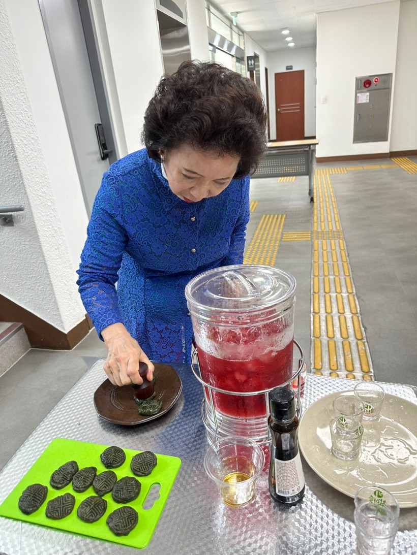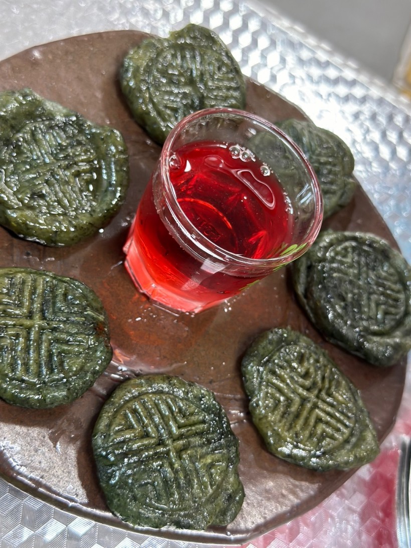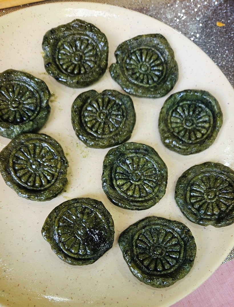 수리취떡에 수레바퀴 모양 떡살을 찍어내는 것이었는데,