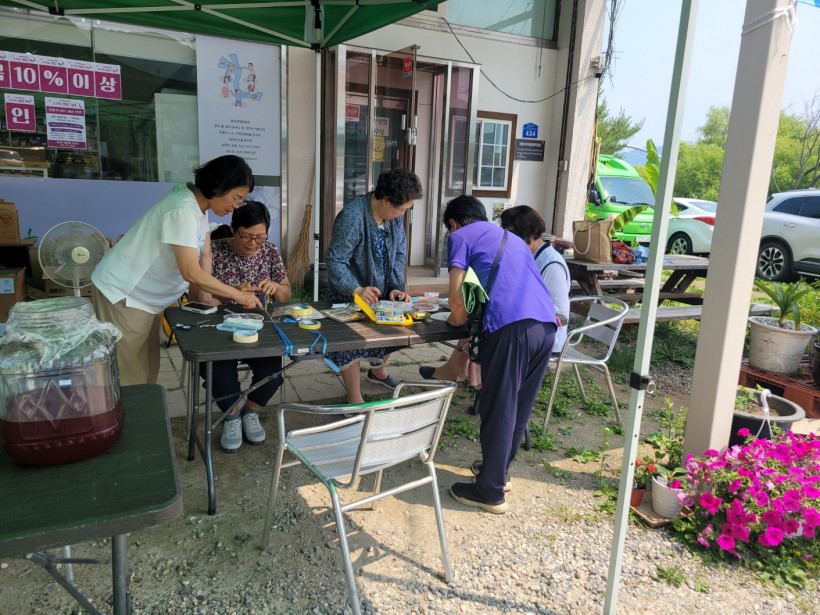 조합원끼리 서로 도와가며 예쁘게 만드는 모습이