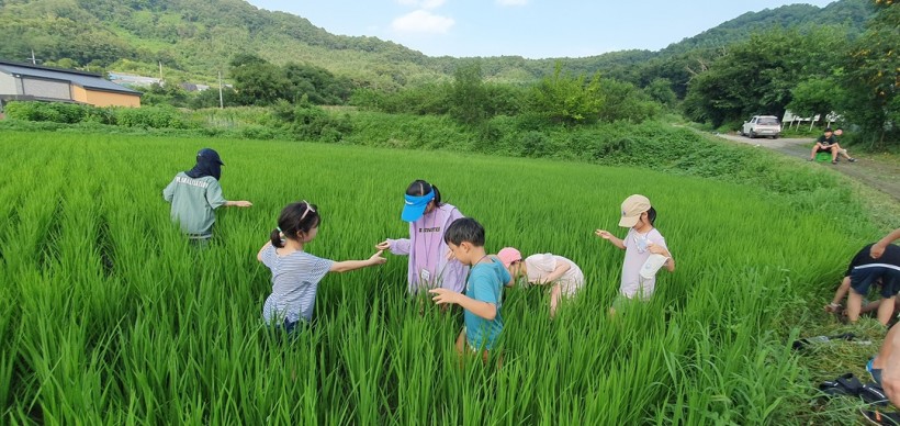 한바탕 신나게 놀고서는 논에 사는 생물을 관찰하러 이동했어요.
