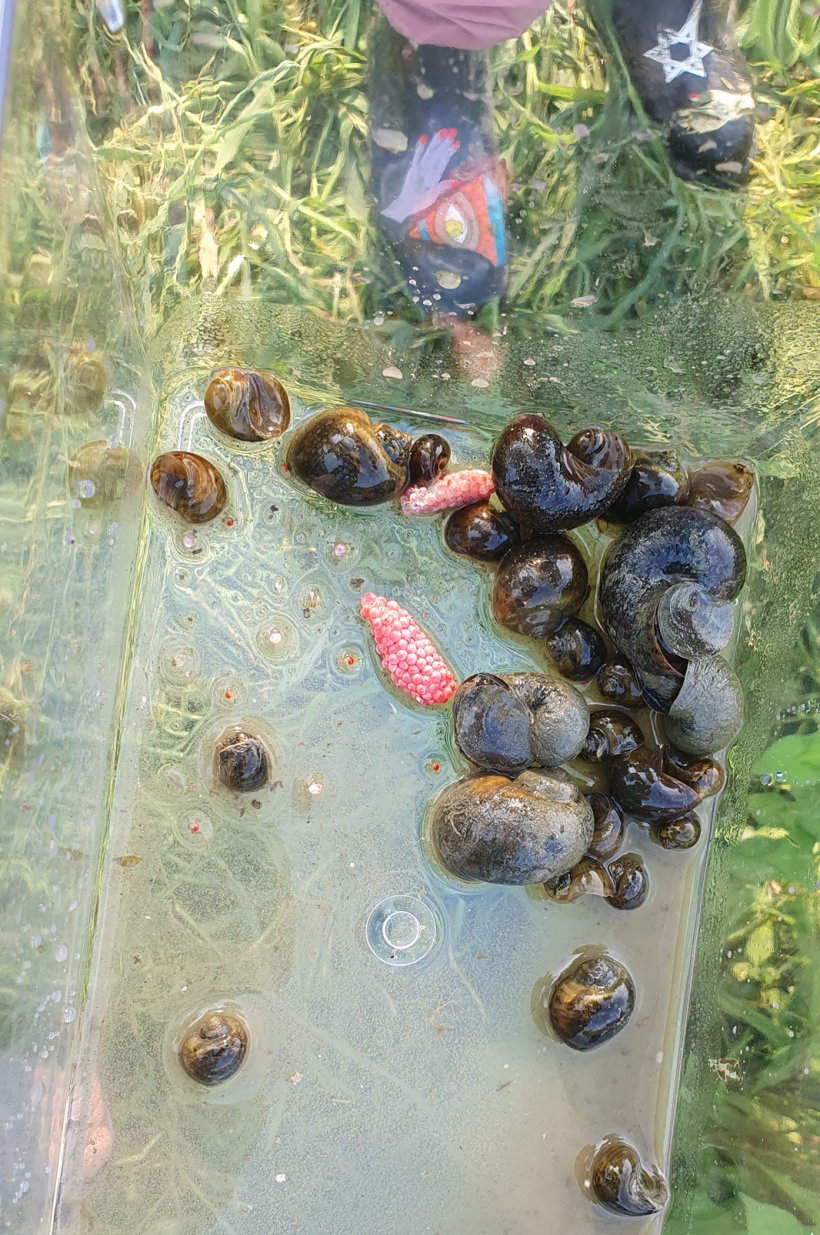 우렁이랑 우렁이알을 직접 보고 채집통에도 담았답니다.