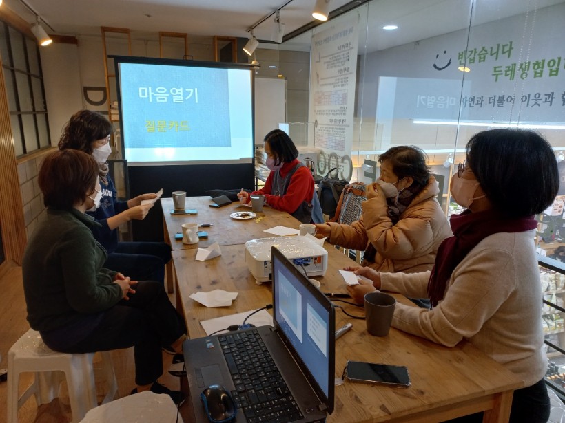 첫 만남의 어색함을 덜기 위해 질문카드로 마음열기를 했어요.