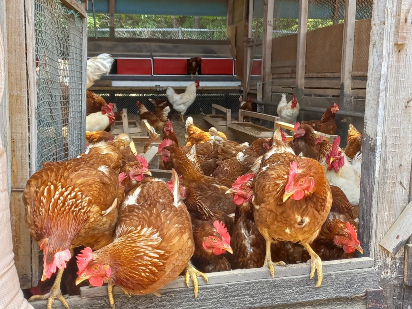 넓은 부지에 깨끗하고 건강한 환경에서 자라고 있는 닭들과