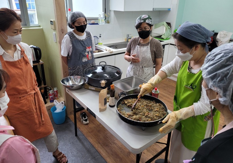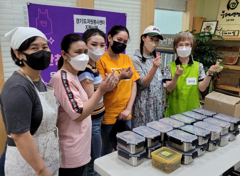자원봉사자들은 봉사를 하며 김치 만드는 법도 배우고