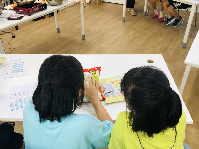 과자의 첨가물을 직접 확인해보는 시간도 가졌어요.