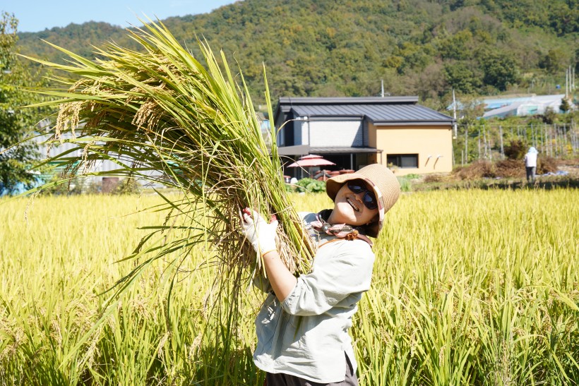 논으로 이동하여 직접 벼를 베어보는 시간도 가졌어요.
